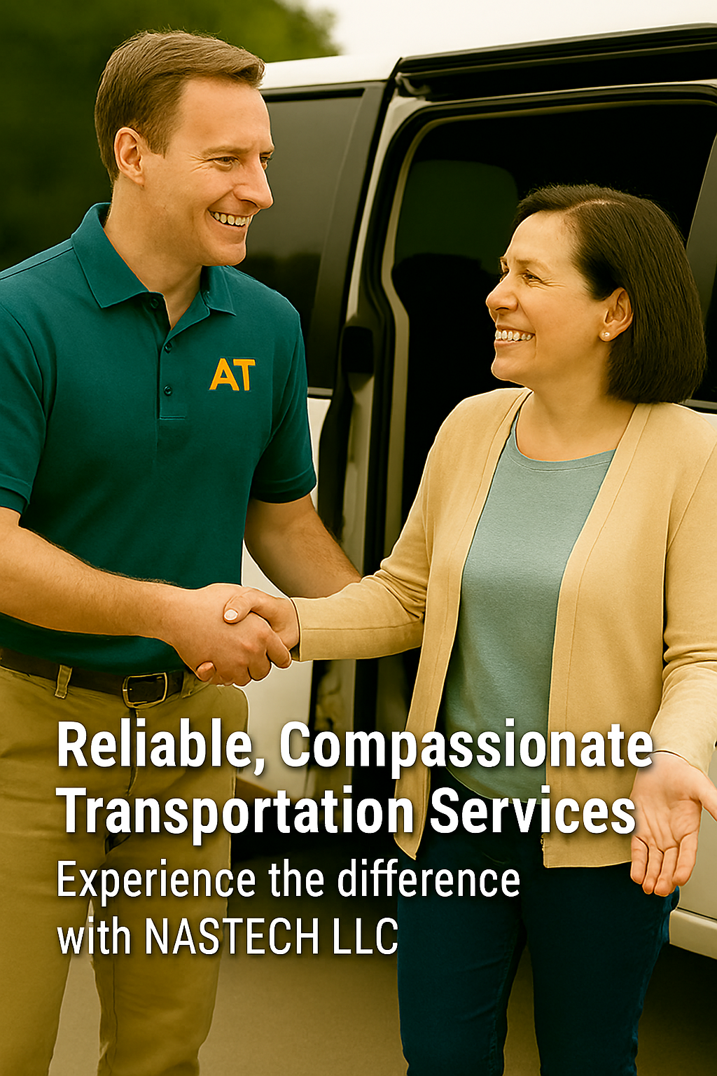 NASTECH LLC is committed to delivering exceptional door-to-door transit services, prioritizing client comfort, security, and peace of mind. We specialize in transporting elderly and disabled clients, as well as students requiring special needs transport. Our services are backed by certified drivers and a focus on maintaining open communication to continuously enhance our service quality and client satisfaction.